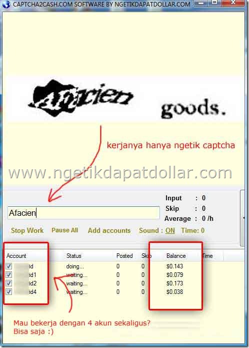 “Anda mengetik captcha menggunakan software Ngetik Dapat Dollar yang terhubung dengan perusahaan captcha. Perusahaan captcha membayar hasil ketikan anda. Gaji dari perusahaan captcha dibayarkan ke rekening online anda, bisa melalui WebMoney, Paypal, ataupun Liberty Reserve. Daya yang tersimpan di rekening online bisa digunakan untuk bertransaksi online, bisa diuangkan ataupun ditransfer ke rekening bank lokal dengan jasa money changer.”